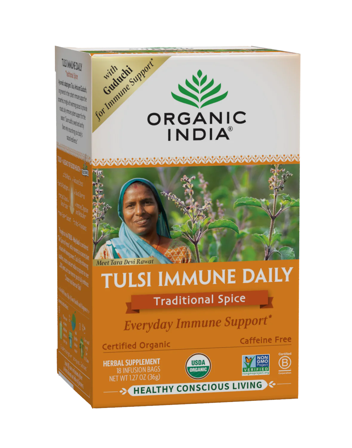 Amplify your body’s natural resilience with some of the most revered herbs and spices from India. In this tea blend, immune-supporting Guduchi marries with adaptogenic Tulsi and swirls with Ginger and Cinnamon for an experience that’s as strengthening as it is comforting. Enjoy daily for a rush of wellness that warms, balances and invigorates — so that you can feel your best year-round, naturally.